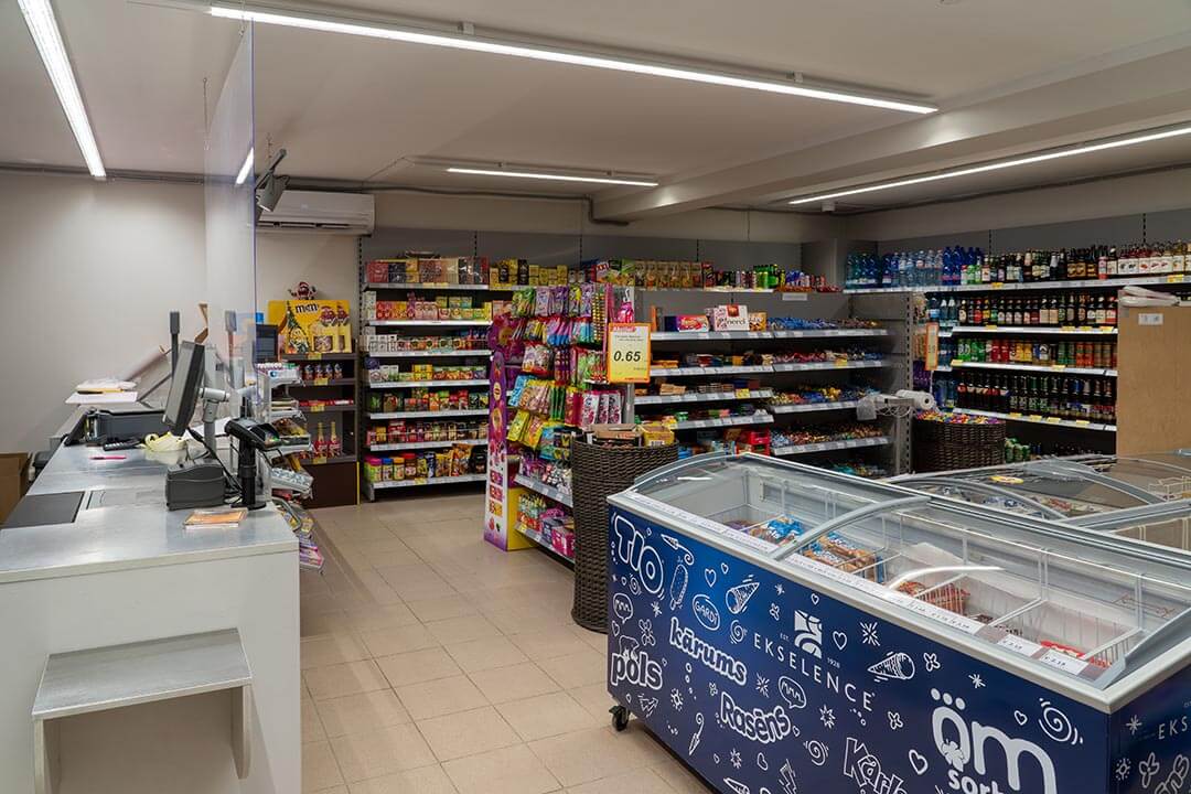 Veikalu veiksmīgā atrašanās vieta un attīstītā infrastruktūra nodrošina ērtu piekļūšanu un plašus stāvlaukumus.